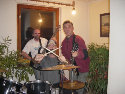 Bild links: Uwe Scherf (b), Holger Sinde (dr), Wolfgang Tiede (g)